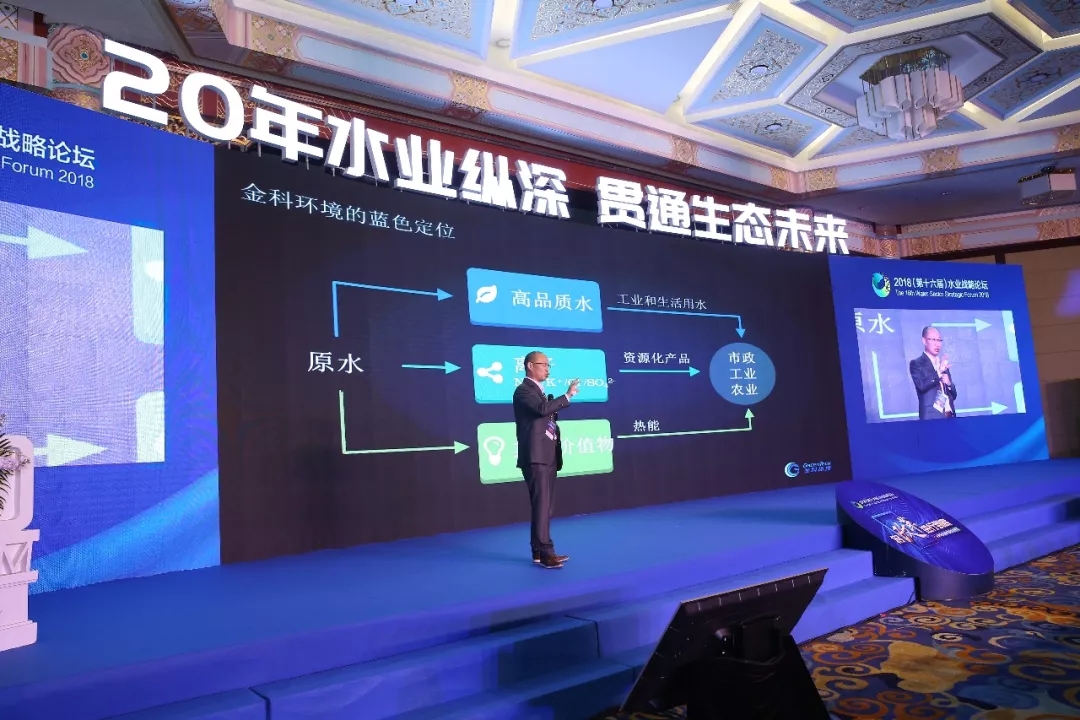 本次論壇以“將改革進(jìn)行到底——二十年水業(yè)縱深貫通生態(tài)未來”為主題,回顧水業(yè)改革歷程,講述變革中企業(yè)戰(zhàn)略轉(zhuǎn)型背后的故事,立足民生預(yù)判水業(yè)變革方向。張慧春董事長(zhǎng)從公司的本質(zhì)——?jiǎng)?chuàng)造價(jià)值出發(fā),提出從“環(huán)境治理”向“價(jià)值物回收和資源化”,即“綠色經(jīng)濟(jì)”向“藍(lán)色經(jīng)濟(jì)”的戰(zhàn)略轉(zhuǎn)變思路,介紹了金科環(huán)境“通過水中價(jià)值物回收和資源化解決水污染和水短缺問題”的戰(zhàn)略定位。瞄準(zhǔn)這一定位,金科環(huán)境聚焦原水中包括高品質(zhì)水、離子和其他價(jià)值物在內(nèi)的一切資源,通過其原創(chuàng)的藍(lán)色生態(tài)商業(yè)模式,為客戶提供工程建設(shè)技術(shù)、數(shù)字雙胞胎及運(yùn)營服務(wù)和各類資源化產(chǎn)品。