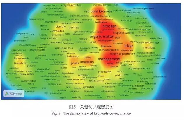 此外,土壤質(zhì)量早期的研究熱點(diǎn)主要集中農(nóng)業(yè)方面,且多描述單個(gè)土壤性質(zhì),例如有機(jī)質(zhì)、團(tuán)聚體等。隨著研究的不斷深入,當(dāng)前涌現(xiàn)出土壤修復(fù)、碳匯、最小數(shù)據(jù)集、土地利用變化、森林、群落等一些研究熱點(diǎn),這也體現(xiàn)出土壤質(zhì)量的研究開(kāi)始傾向于環(huán)境方面。