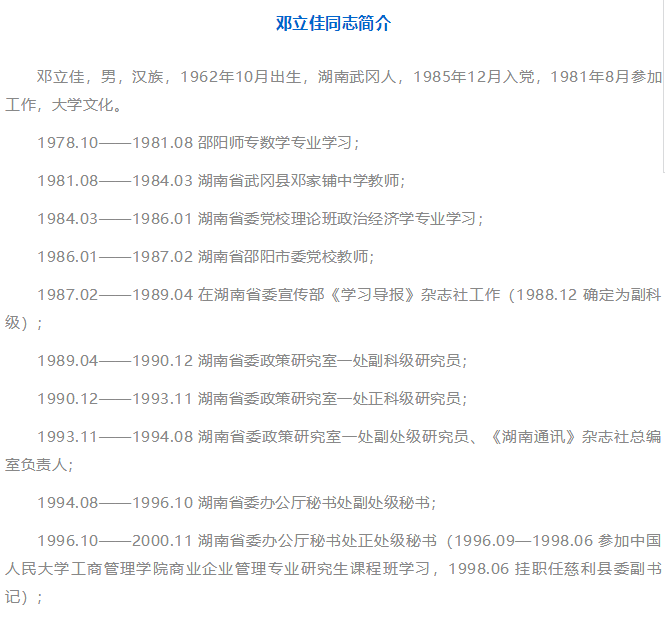 鄧立佳 任湖南省環(huán)境保護(hù)廳廳長