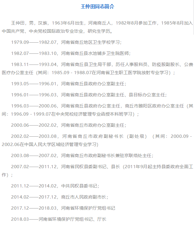 此外,還有一些來自地方黨委政府的新廳長,陜西省環(huán)保廳廳長馮振東的上一個職務(wù)是陜西省延安市委副書記、政法委書記;2018 年3 月被任命的河南省環(huán)保廳廳長王仲田,此前曾任河南省商丘市副市長。