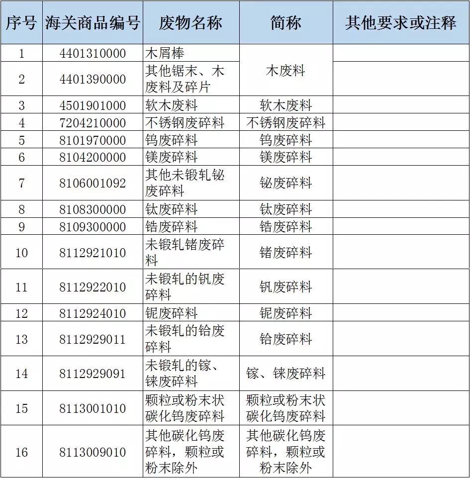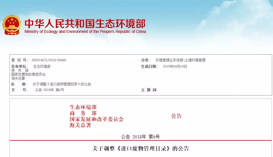 關(guān)于調(diào)整《進(jìn)口廢物管理目錄》的公告