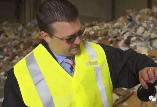 McKay用一個(gè)大耙子從垃圾堆里將不可回收的物品扒出來, 其中包括一個(gè)裝有狗糧的袋子以及一個(gè)印有可回收字樣的黑色塑料咖啡杯蓋, "無論從外觀、手感還是標(biāo)識看, 它都是可回收垃圾,然而它不是!"