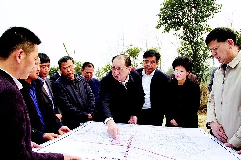 仙桃市委書(shū)記胡玖明(右四)、市長(zhǎng)周文霞(右二)在調(diào)研循環(huán)經(jīng)濟(jì)產(chǎn)業(yè)園建設(shè)準(zhǔn)備工作?! ?/p>