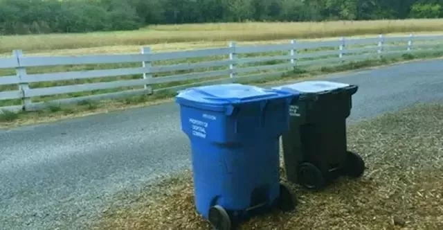在美國(guó)鄉(xiāng)村,每家每戶都有一個(gè)帶輪子的垃圾箱,
