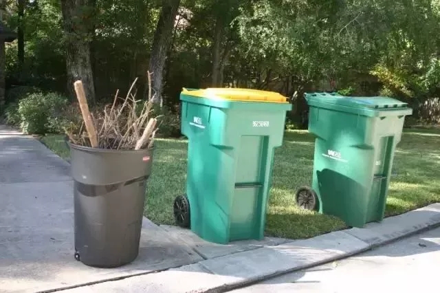 樹(shù)枝放入專(zhuān)門(mén)垃圾桶等待回收