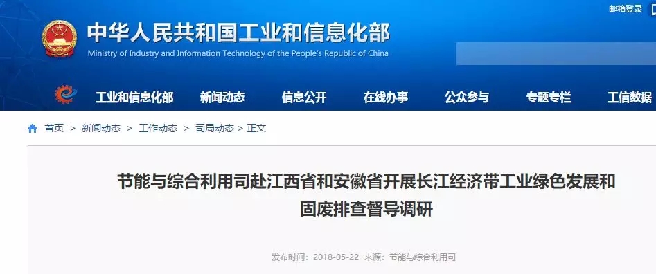 為了解長江經(jīng)濟帶工業(yè)綠色發(fā)展、工業(yè)固體廢物綜合利用大排查、化工等重點行業(yè)發(fā)展、部分省份有關問題整改等工作進展情況,工業(yè)和信息化部節(jié)能與綜合利用司組織開展了沿江省市督導調(diào)研工作。2018年5月14-18日,部節(jié)能與綜合利用司副司長畢俊生帶隊赴江西省和安徽省開展實地督導調(diào)研,重點督導調(diào)研了化工、石化、建材等重點行業(yè)的企業(yè)以及化工類園區(qū),詳細了解了企業(yè)發(fā)展和園區(qū)規(guī)劃情況,并分別在九江、安慶、銅陵召開座談會,聽取了省市工信、環(huán)境等部門以及企業(yè)負責人的工作匯報和建議。