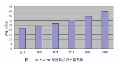 根據(jù)中華研普行業(yè)調(diào)研報(bào)告,國(guó)內(nèi)建筑垃圾產(chǎn)量預(yù)測(cè)圖1可知,2015年至2020年建筑垃圾產(chǎn)量逐年增長(zhǎng),到2020年時(shí)為39.66億噸。