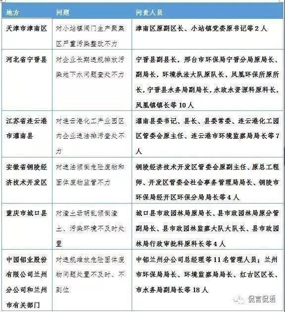 此外,從本次通報(bào)的案例看,在被查處的黨員干部中,既有地方黨組織主要負(fù)責(zé)人,也有環(huán)保局、水務(wù)局、園林局等職能部門的黨員干部;既有負(fù)責(zé)執(zhí)法檢查,也有負(fù)責(zé)監(jiān)管審批的黨員干部;既有黨政“一把手”,也有國有企業(yè)相關(guān)負(fù)責(zé)人。