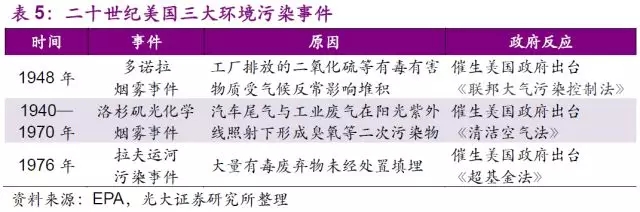 環(huán)保治理的投資隨著時(shí)間累積日益增長(zhǎng),發(fā)達(dá)國(guó)家的政府已逐步意識(shí)到“先污染后治理”的成本要遠(yuǎn)高于一開始就以“對(duì)環(huán)境負(fù)責(zé)”的態(tài)度處置廢物。經(jīng)歷過1948年的多諾拉SO2污染、1940—70年間的洛杉磯光化學(xué)污染、以及1976年的拉夫運(yùn)河廢物污染等事件后,公眾對(duì)環(huán)境治理的呼聲達(dá)到了頂峰。美國(guó)政府在出臺(tái)相應(yīng)法律法規(guī)規(guī)范環(huán)保行為時(shí),對(duì)環(huán)保處置設(shè)施的要求也在不斷的提升中。