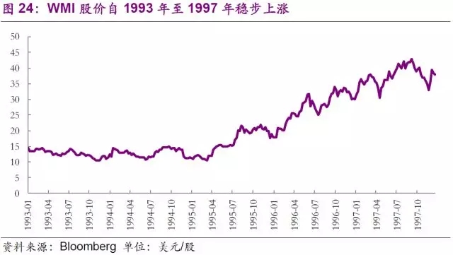 然而隨著以上業(yè)務(wù)過多的占用了公司的現(xiàn)金流,且利潤(rùn)率并不理想,帶動(dòng)公司營(yíng)業(yè)收入在1997年整體走低。雖然公司在1997年更名回到WMI,表明公司將聚焦主業(yè),并且計(jì)劃變賣掉25億美元的非核心且表現(xiàn)不佳的資產(chǎn),但是當(dāng)年多達(dá)11.8億美元的虧損已經(jīng)為公司次年被收購埋下了隱患。