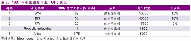 UW在1998年正式提出的并購意向出乎大多人的預(yù)料。雖然WMI在1997年虧損11.8億元,但其營(yíng)業(yè)收入和市值仍是當(dāng)之無愧的固廢老大;而UW在固廢行業(yè)排名第三,營(yíng)收更是只有WMI的不到1/3。但是我們認(rèn)為,以下三個(gè)因素促使了這次并購的成功。
