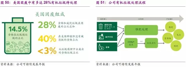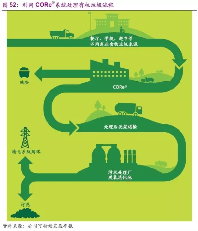 公司還在傳統(tǒng)堆肥處理有機(jī)垃圾的基礎(chǔ)上進(jìn)行了新技術(shù)的研發(fā)。公司在2013年新研發(fā)的有機(jī)廢物集中回收系統(tǒng)(CORe®),通過對(duì)商業(yè)食物垃圾的處理,制成泥漿后送至污水處理廠的厭氧消化池,可以提升多達(dá)70%的厭氧消化的能量產(chǎn)生量。公司在2015年已有3家處理廠使用CORe®系統(tǒng)處理8000噸的商業(yè)食物垃圾,未來仍有擴(kuò)張計(jì)劃。