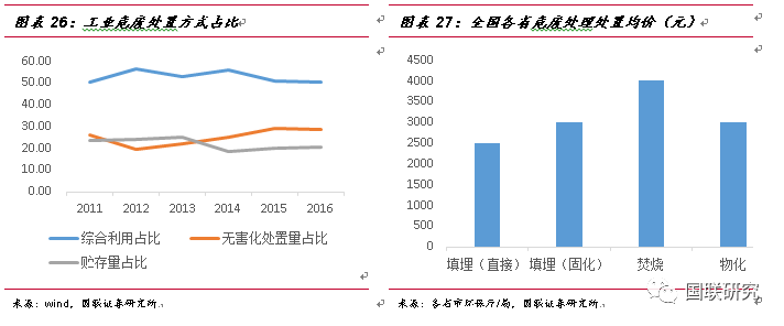 綜合兩種測算方法,我們認為2016年我國危廢實際產生量將在1.07-1.24億噸左右,低位值1.07億噸,遠高于生態(tài)環(huán)境部統(tǒng)計值。