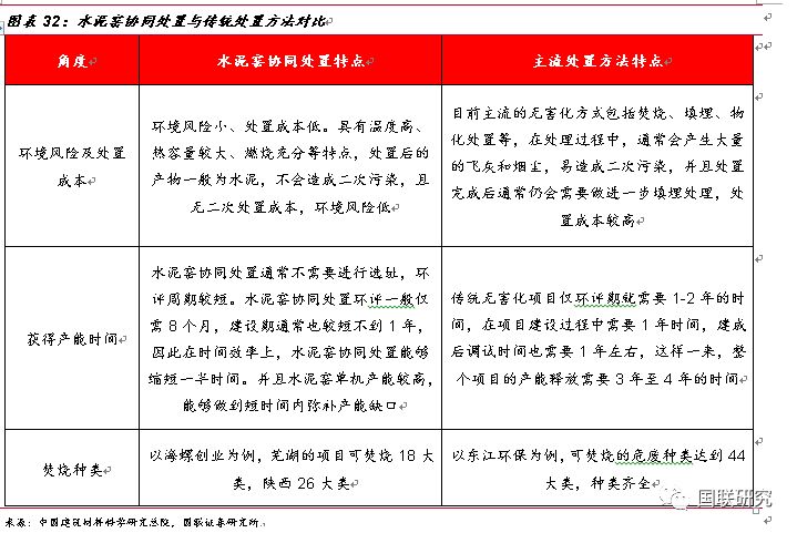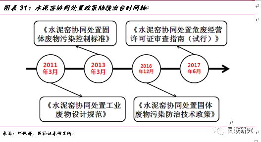 水泥窯協(xié)同處置—危廢無害化處置的有益補充。政策刺激下,水泥窯協(xié)同處置危廢應運而生。2011年3月,《水泥窯協(xié)同處置工業(yè)廢物設計規(guī)范》正式出臺,文件對工業(yè)廢物處置規(guī)模、技術等進行了詳細要求,標志著對水泥窯協(xié)同處置政策成熟化的開端。2013年兩高司法提出非法排放、傾倒、處理3噸以上的危廢入刑,從法律層面上對危廢的排放進行了強有力的監(jiān)管,同年3月,《水泥窯協(xié)同處置固體廢物污染控制標準》出臺,規(guī)定了污染排放限值、水泥窯設施技術要求以及入窯廢物的特性要求,作為水泥窯協(xié)同處置領域規(guī)范性文件推動了行業(yè)的持續(xù)發(fā)展。2016年12月,《水泥窯協(xié)同處置固體廢物污染防治技術政策》出臺,文中明確了協(xié)同處置固廢應利用現(xiàn)有新型干法水泥窯,采用窯磨一體化的運行方式進行運作,政策發(fā)布之后,新建、改建或擴建處置危險廢物的水泥企業(yè),應按照要求選擇單線設計熟料生產規(guī)模 4000噸/日及以上水泥窯。2017年6月,《水泥窯協(xié)同處置危廢經營許可證審查指南(試行)》出臺,對水泥窯協(xié)同處置危廢的適用范圍、術語定義、經營模式及技術規(guī)范等方面進行了詳細規(guī)定,并將協(xié)同處置的新型干法水泥窯熟料產能的標準重新進行了修訂,由之前4000噸/日調整下降到2000噸/日,進一步擴大了產能空間。