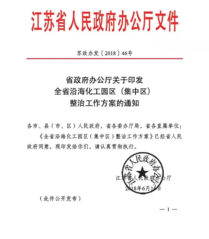 日前,江蘇省辦公廳印發(fā)了《全省沿?;@區(qū)(集中區(qū))整治工作方案的通知》(蘇政辦發(fā)【2018】46號,下稱46號文),文件要求對沿海地區(qū)南通、連云港、鹽城三市轄區(qū)內(nèi)所有化工園區(qū)及園區(qū)內(nèi)所有化工生產(chǎn)企業(yè)進(jìn)行整治。另有消息稱,江蘇省環(huán)保廳也下發(fā)了復(fù)產(chǎn)通知,對園區(qū)和企業(yè)環(huán)保達(dá)標(biāo)做出具體規(guī)定。