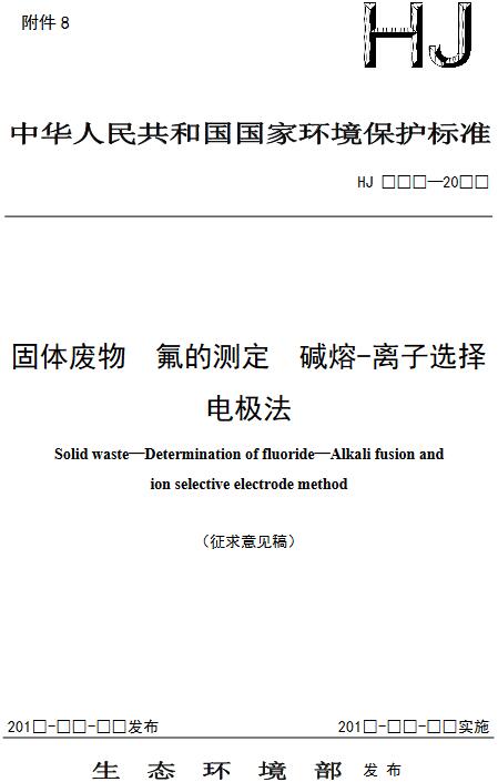 固體廢物 氟的測(cè)定 堿熔-離子選擇電極法(征求意見稿)