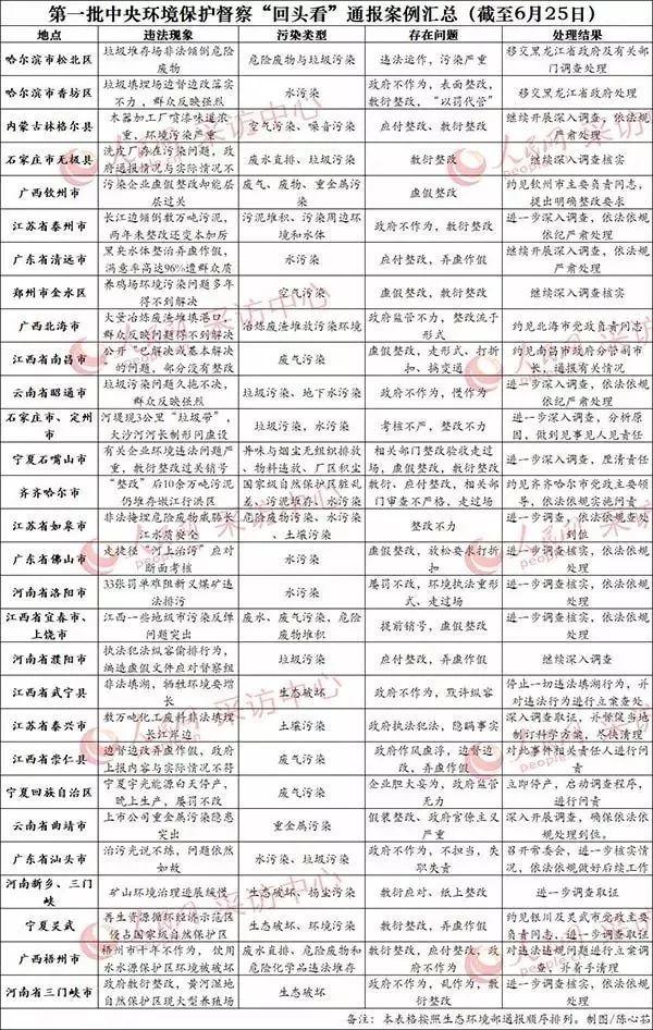 第一批中央環(huán)保督查“回頭看”通報(bào)案例匯總(截至6月25日)。