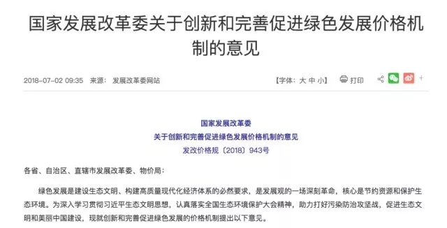 7月2日,國(guó)家發(fā)改委發(fā)布《關(guān)于創(chuàng)新和完善促進(jìn)綠色發(fā)展價(jià)格機(jī)制的意見(jiàn)》(下稱《意見(jiàn)》),提出到2020年,有利于綠色發(fā)展的價(jià)格機(jī)制、價(jià)格政策體系要基本形成,促進(jìn)資源節(jié)約和生態(tài)環(huán)境成本內(nèi)部化的作用明顯增強(qiáng);到2025年,適應(yīng)綠色發(fā)展要求的價(jià)格機(jī)制要更加完善,并落實(shí)到全社會(huì)各方面各環(huán)節(jié)。
