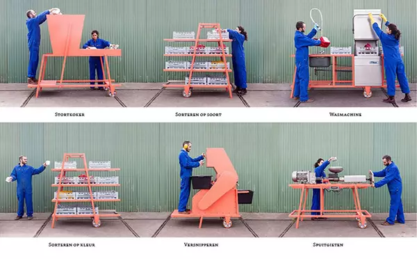 Bureau SLA 和Overtreders W 是兩家總部位于阿姆斯特丹的設(shè)計(jì)公司,它們正在把塑料垃圾轉(zhuǎn)變?yōu)閸湫碌慕ㄖ牧稀!爸腔鄣牡图夹g(shù)等同于嶄新的高技術(shù)”正是他們的設(shè)計(jì)理念。 “美麗塑料車間項(xiàng)目”是獨(dú)一無二的創(chuàng)新項(xiàng)目,由建筑師和設(shè)計(jì)師合作,把塑料垃圾制作成可用的建筑外立面材料。這一創(chuàng)新團(tuán)隊(duì)認(rèn)為世上不存在廢物,除了制造時(shí)被賦予的功能,任何物品都有更多的功能,塑料尤其如此。
