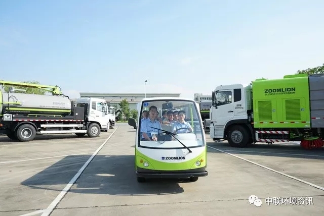 中聯(lián)環(huán)境CEO張建國(guó)、執(zhí)行總裁陳培亮陪同介紹了中聯(lián)環(huán)境無人駕駛掃路車,智能環(huán)衛(wèi)云平臺(tái)、智能垃圾箱、村鎮(zhèn)污水處理設(shè)備、新能源環(huán)衛(wèi)裝備等創(chuàng)新型產(chǎn)品,還參觀智能流水線制造車間。