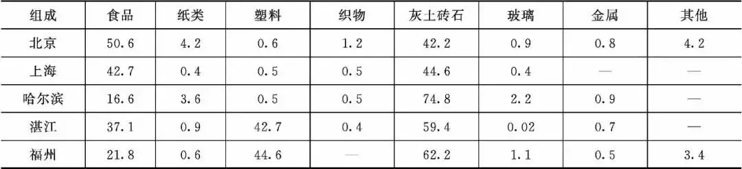表1.我國(guó)部分城市固廢組成(數(shù)據(jù)來(lái)源于智污邦聯(lián)環(huán)保管家平臺(tái))