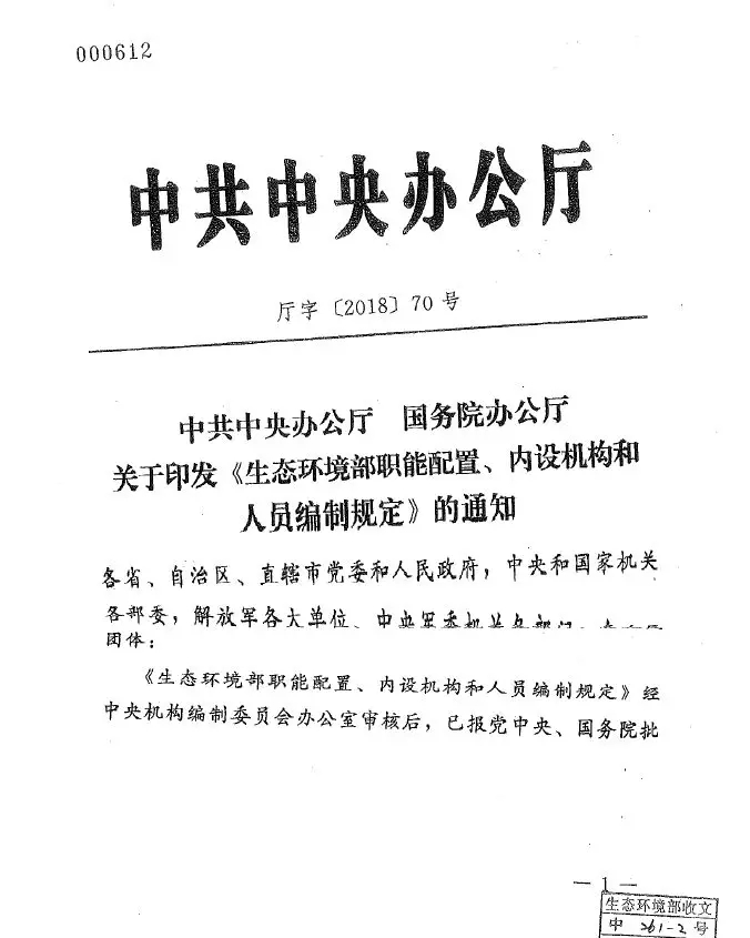 生態(tài)環(huán)境部“三定方案”公布,首現(xiàn)"中央生態(tài)環(huán)保督察"?!靖轿募摹?/h1>