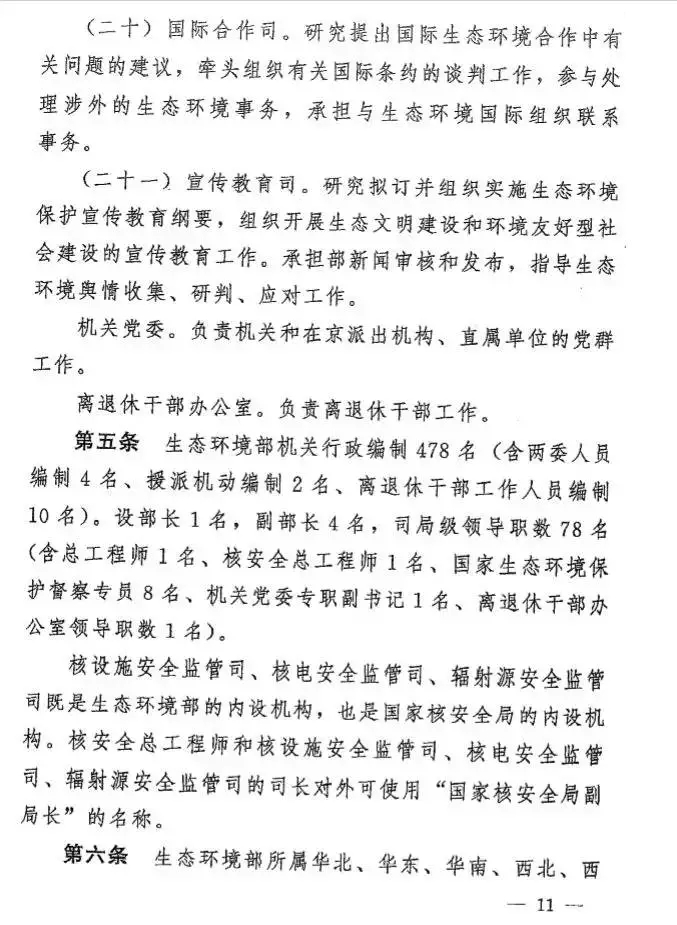 據(jù)有關人士透露,這一方案在原環(huán)境保護部“三定”方案基礎上,有了很多不同。明確生態(tài)環(huán)境部是國務院組成部門,為正部級,對外保留國家核安全局牌子,加掛國家消耗臭氧層物質進出口管理辦公室牌子。