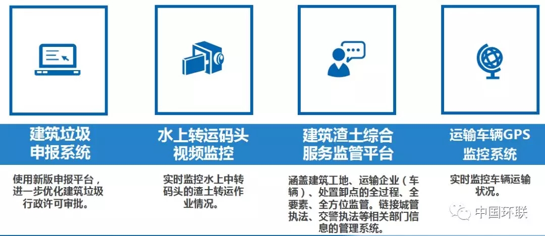4、建立全方位信息化體系:進一步梳理建筑垃圾申報平臺、GPS監(jiān)控平臺、碼頭視頻監(jiān)控系統(tǒng)、工地監(jiān)控視頻、計量稱重系統(tǒng)、微信舉報平臺和綜合服務(wù)監(jiān)管平臺等建筑垃圾管理信息化系統(tǒng),通過提升科技化手段加強日常管理。