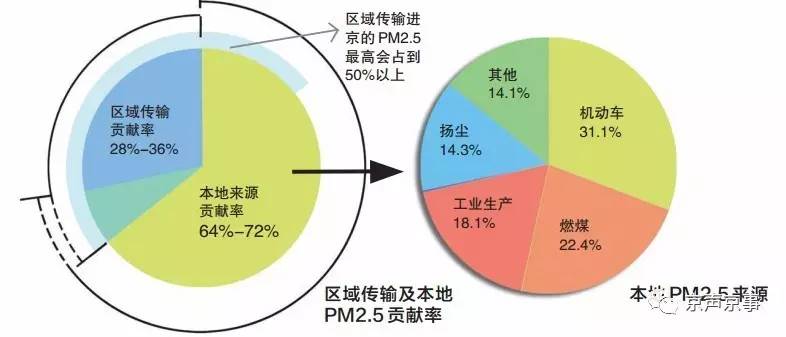 2014年4月,北京正式發(fā)布PM2.5來源解析最新研究成果:全年PM2.5來源中,區(qū)域傳輸貢獻約占28%至36%,本地污染排放貢獻占64%至72%。在本地污染貢獻中,機動車排放比例最高,達31.1%。一些特定空氣重污染過程中,通過區(qū)域傳輸進京的PM2.5會占到總量的50%以上。