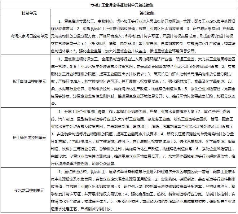 推進(jìn)工業(yè)企業(yè)入園管理。完善工業(yè)集聚區(qū)污水收集處理設(shè)施和在線監(jiān)控設(shè)施。針對長江、漢江、府河等重點流域排放廢水的工業(yè)企業(yè),制定并執(zhí)行污染物特別排放限值,出水接入城鎮(zhèn)污水管網(wǎng)的應(yīng)達(dá)到《污水綜合排放標(biāo)準(zhǔn)》一級B要求,直接排入水環(huán)境的工業(yè)園區(qū)應(yīng)加強中水回用,廢水排放執(zhí)行《城鎮(zhèn)污水處理廠污染物排放標(biāo)準(zhǔn)》表1中一級A排放標(biāo)準(zhǔn)。