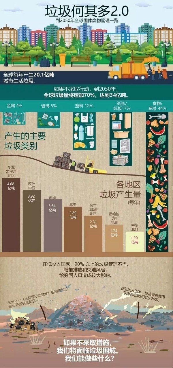 如不緊急行動(dòng)起來(lái),到2050年全球垃圾量將在目前水平上增加70%,世界銀行新報(bào)告《垃圾何其多2.0:到2050年全球固體廢物管理一覽》報(bào)告如是說(shuō)。