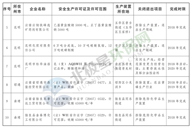 日前云南省人民政府發(fā)布了《云南省城鎮(zhèn)人口密集區(qū)危險(xiǎn)化學(xué)品生產(chǎn)企業(yè)搬遷改造名單》,其中就地改造企業(yè)6戶,搬遷入園企業(yè)20戶,關(guān)閉退出企業(yè)16戶,具體名單見正文: