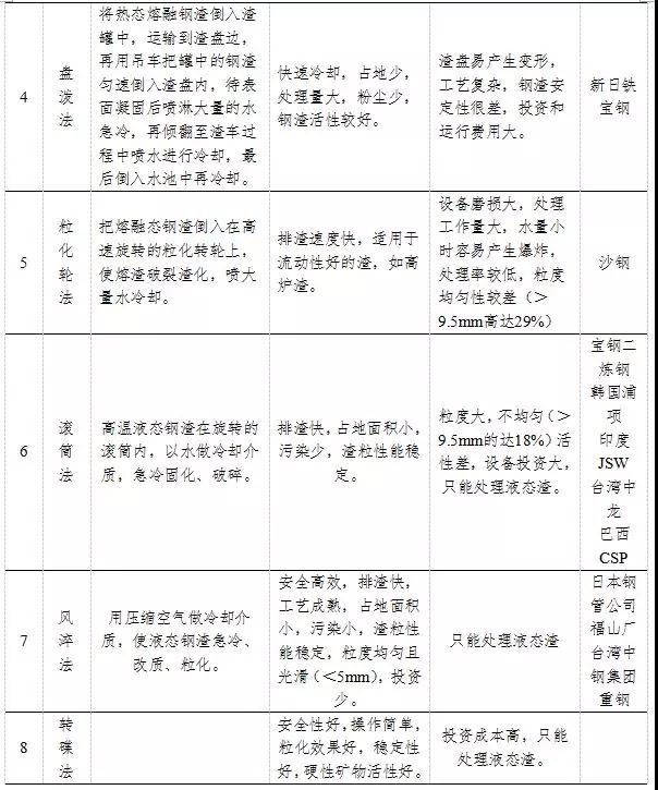 冶金信息標準研究院曾統(tǒng)計過國內(nèi)129家大中型鋼企鋼渣一次處理數(shù)據(jù),采用熱悶法的有59家,占比45.7%;采用熱潑法的改進處理工藝“熱潑悶渣法”的有51家,占比39.5%;具第三位的是寶鋼的滾筒法,有10家,占比7.8%;采用水淬的1家,風淬的2家,?;?家,其它4家。