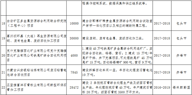 資源綜合利用。積極爭(zhēng)取國家在內(nèi)蒙古布局高鋁粉煤灰提取氧化鋁項(xiàng)目,擴(kuò)大產(chǎn)業(yè)化規(guī)模,降低氧化鋁進(jìn)口比例。利用粉煤灰、煤矸石、礦渣生產(chǎn)水泥、新型墻材、土壤改良劑、復(fù)合肥等,到2020年,煤矸石、粉煤灰等大宗工業(yè)固廢綜合利用率達(dá)到45%。推進(jìn)工業(yè)園區(qū)高濃度難降解工業(yè)廢水、重金屬廢水、城鎮(zhèn)污水綜合利用。支持包頭建設(shè)國家“城市礦產(chǎn)”示范基地,發(fā)展報(bào)廢汽車、廢舊電子電器等資源再利用產(chǎn)業(yè)。