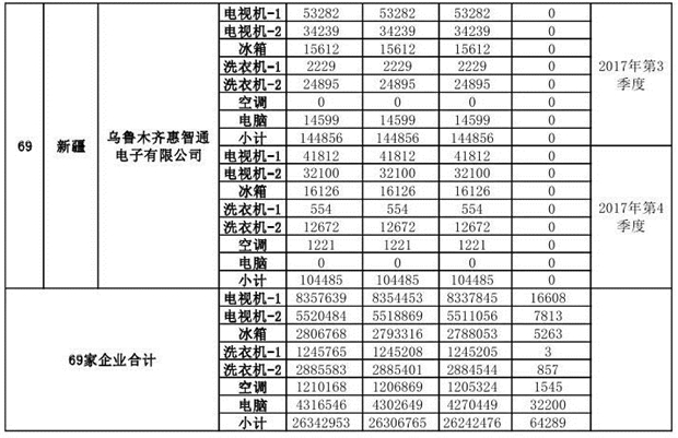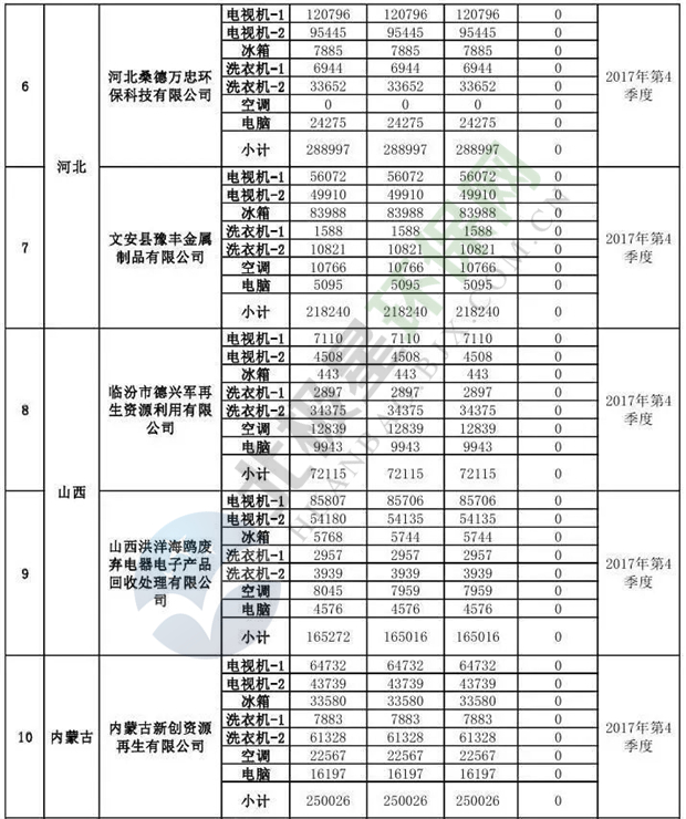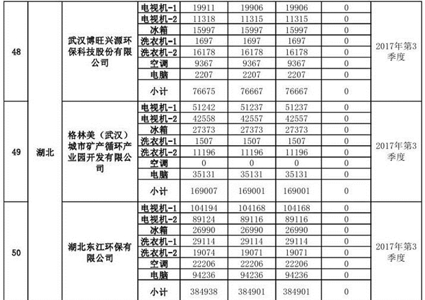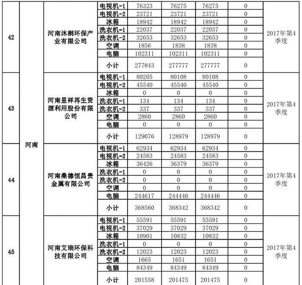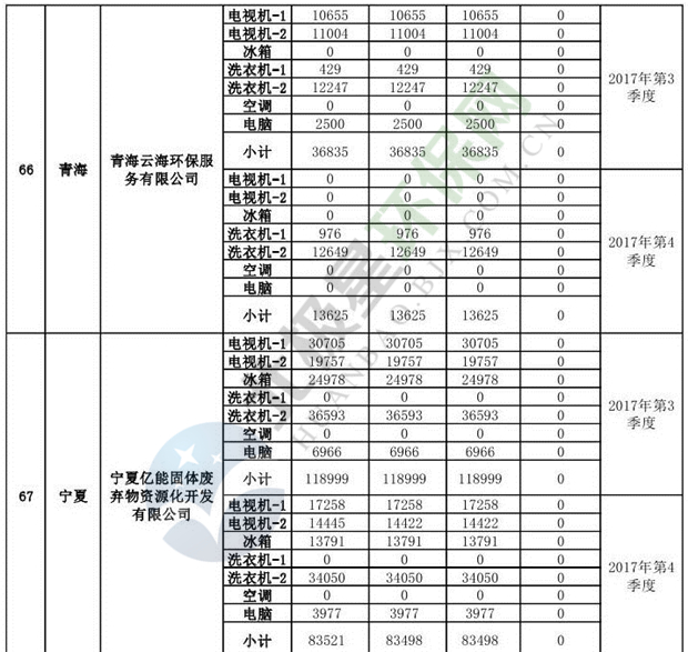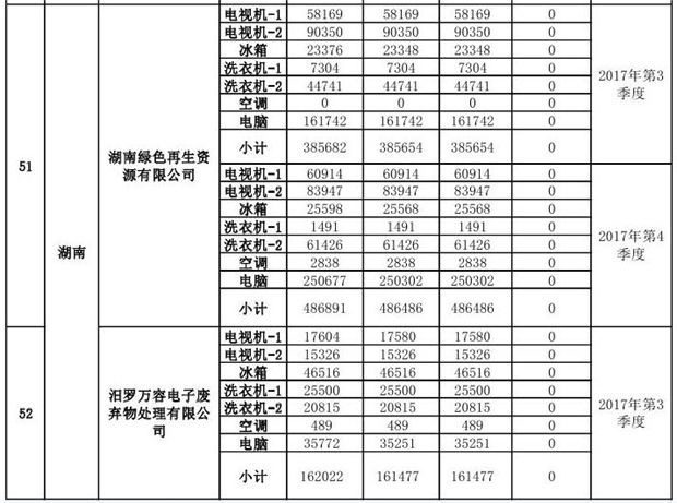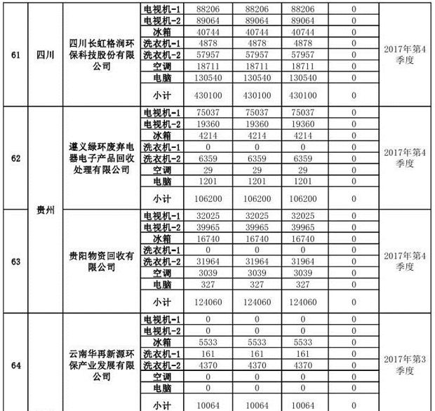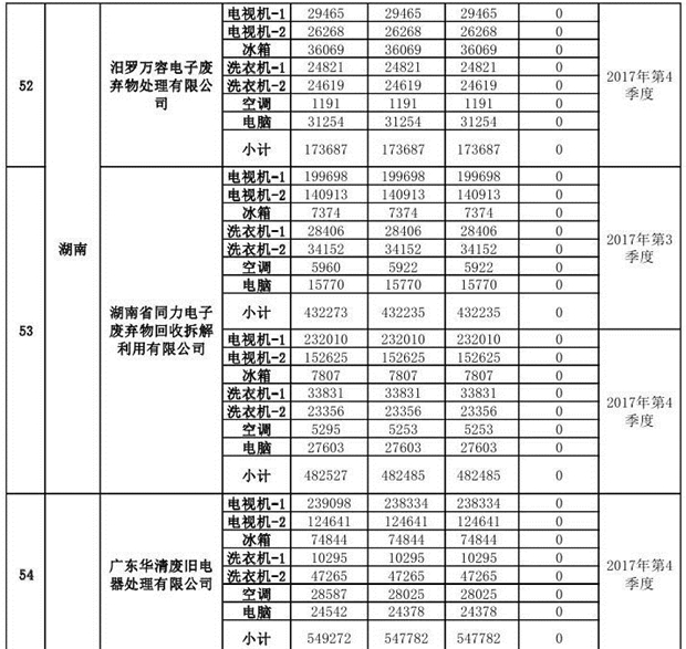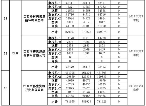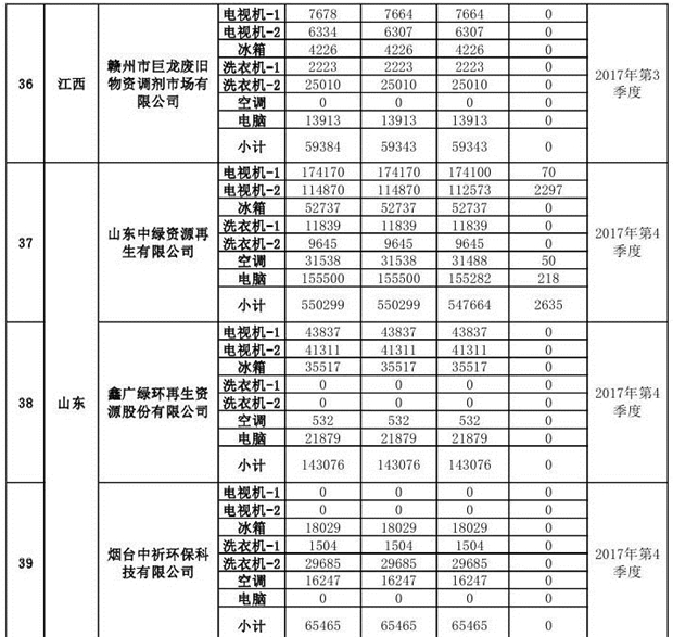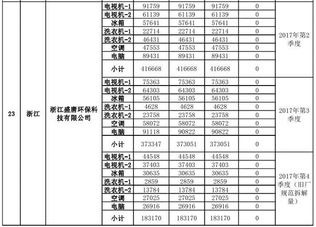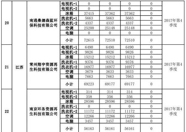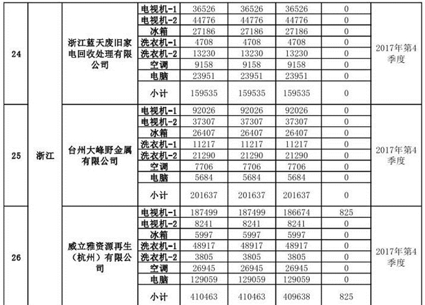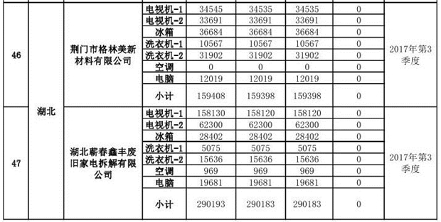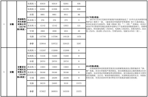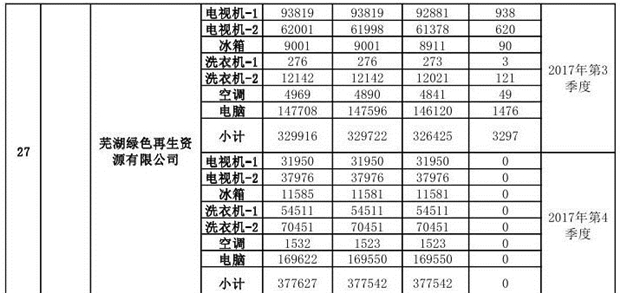 上述69家通過(guò)技術(shù)復(fù)核的企業(yè)申請(qǐng)廢電器規(guī)范拆解處理數(shù)量為26342953 臺(tái)(套);經(jīng)省級(jí)環(huán)保部門(mén)審核認(rèn)定廢電器規(guī)范拆解處理數(shù)量為26306765臺(tái)(套),扣減36188臺(tái)(套);部固管中心通過(guò)技術(shù)復(fù)核擬確認(rèn)廢電器規(guī)范拆解處理數(shù)量為26242476臺(tái)(套),扣減64289臺(tái)(套)(詳見(jiàn)附件)。