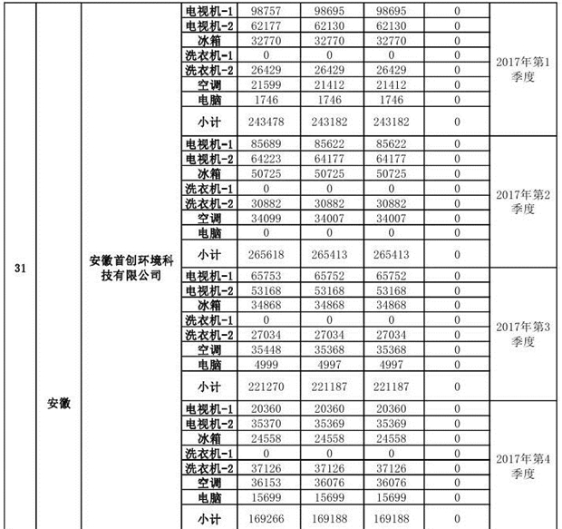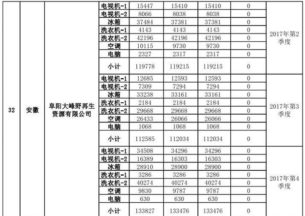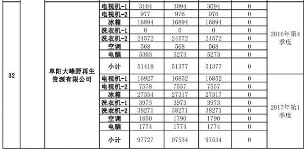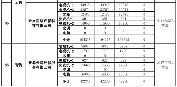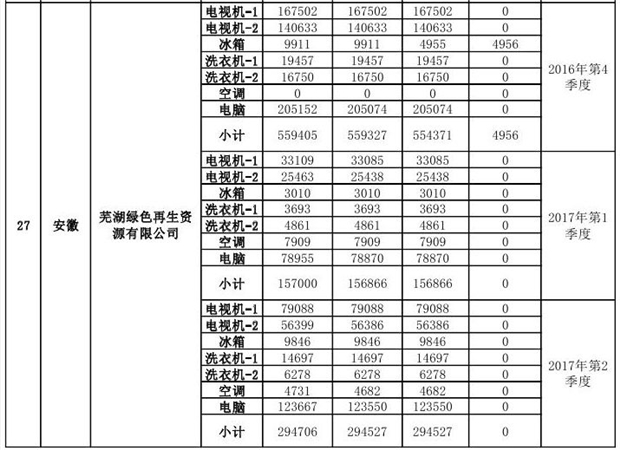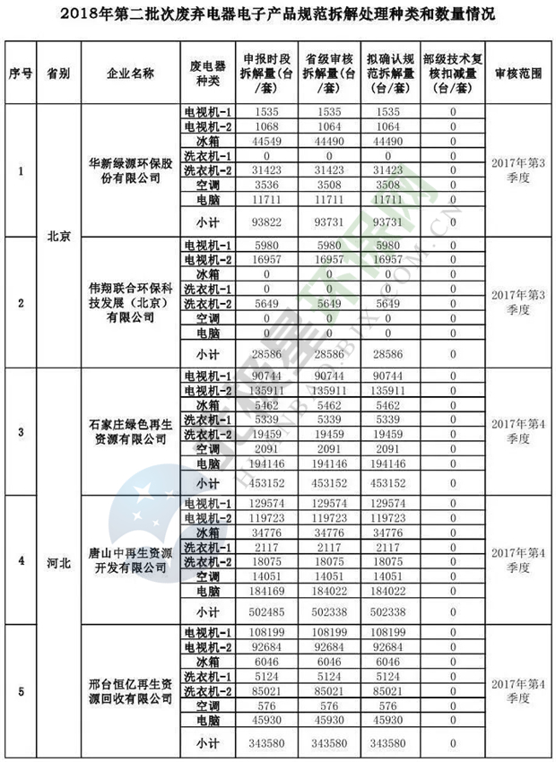 附件1:《2018年第二批次廢棄電器電子產(chǎn)品規(guī)范拆解處理種類和數(shù)量情況公示表》