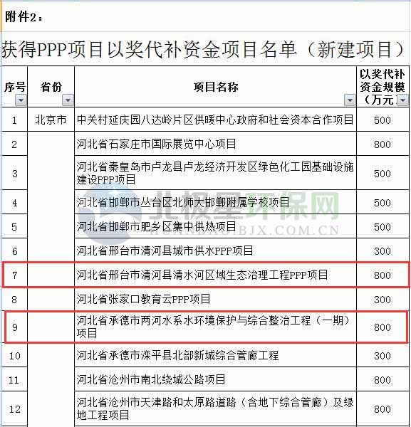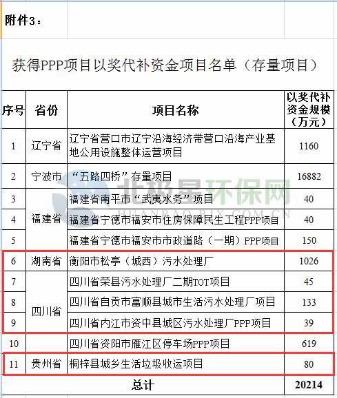 財政部公布獲得PPP項目以獎代補資金項目名單 涉大批環(huán)保項目