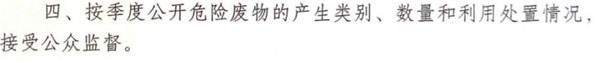同樣按照江蘇省環(huán)保廳的要求,每個危險廢物產(chǎn)生單位和經(jīng)營單位都要通過現(xiàn)場公示、網(wǎng)站公布、報刊媒體等多種渠道主動公開危險廢物產(chǎn)生、處置、利用的情況,接受社會的監(jiān)督。