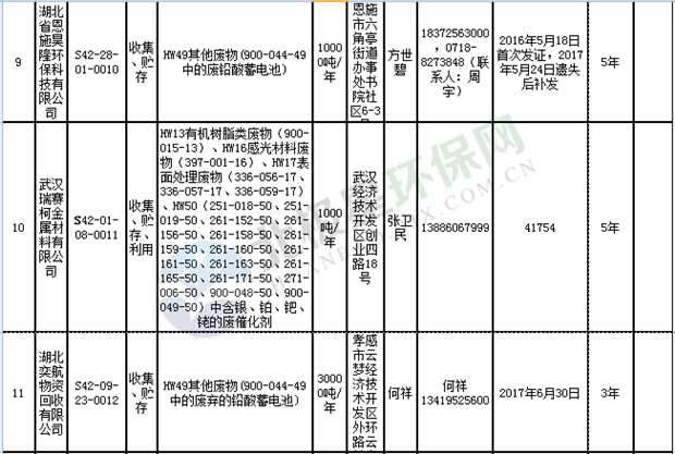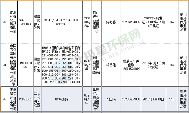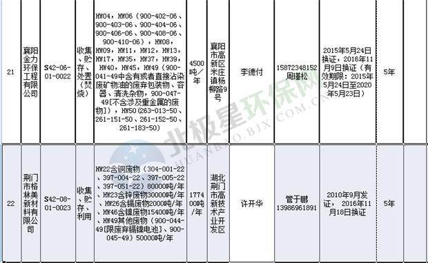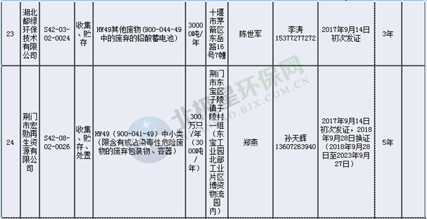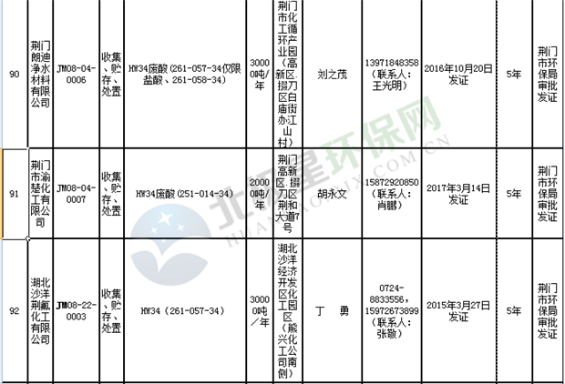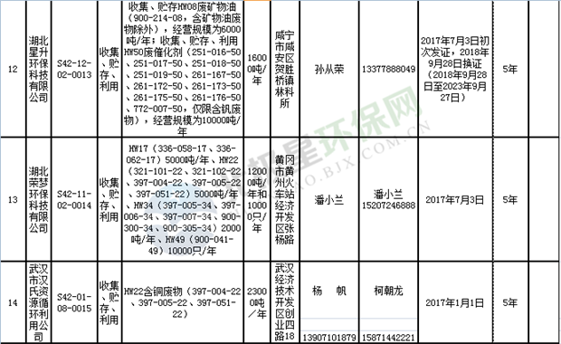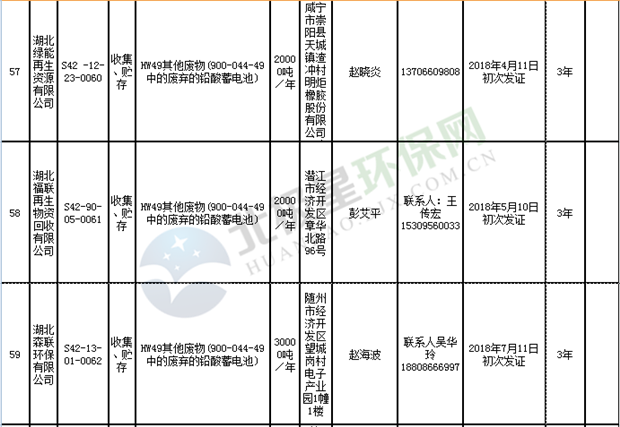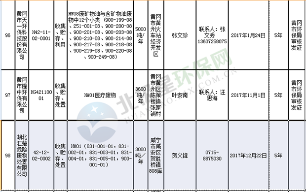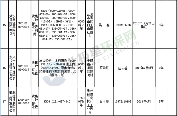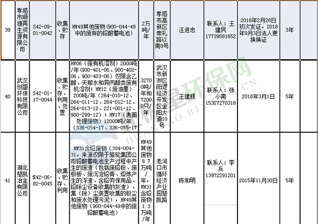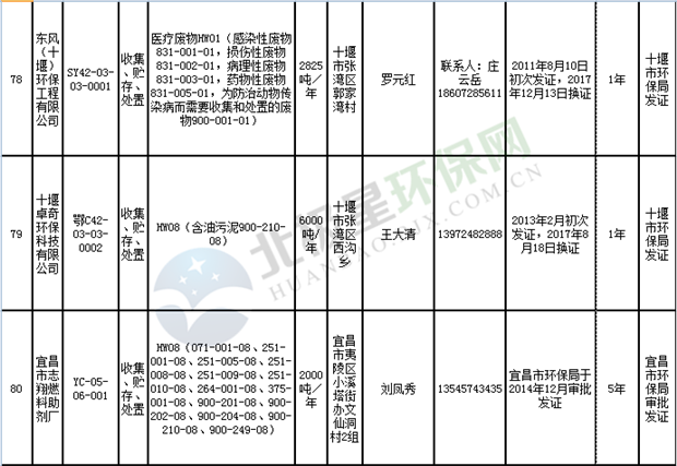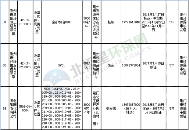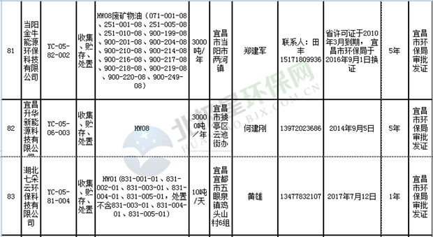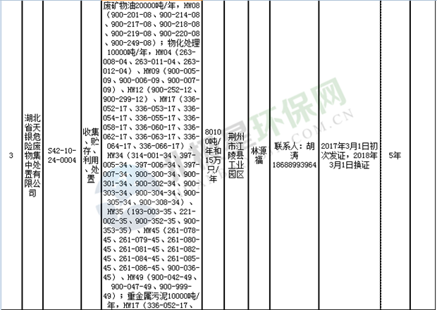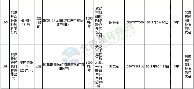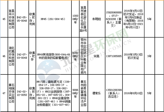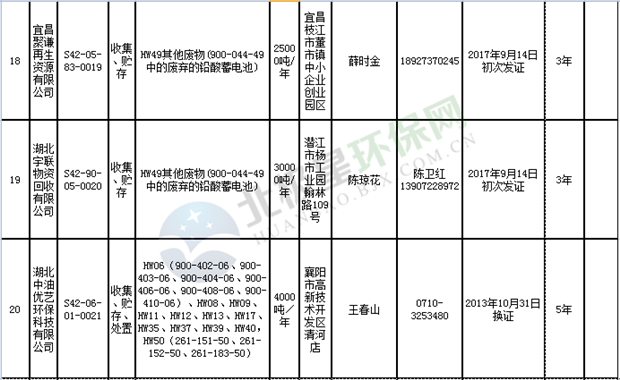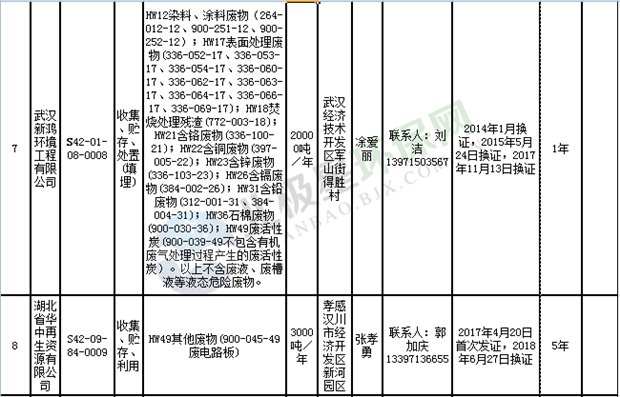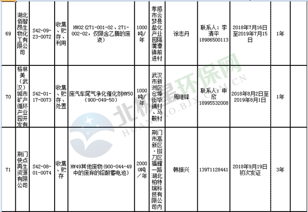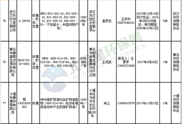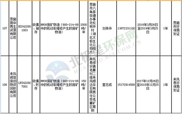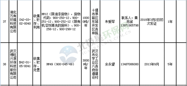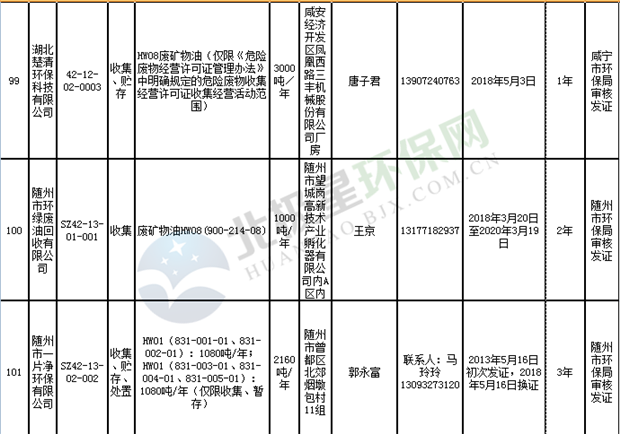 日前湖北省環(huán)保廳發(fā)布了《湖北省危險(xiǎn)廢物經(jīng)營(yíng)許可證》單位名錄(截至2018年10月12日,共108家),且附有聯(lián)系電話,具體內(nèi)容如下: