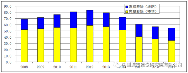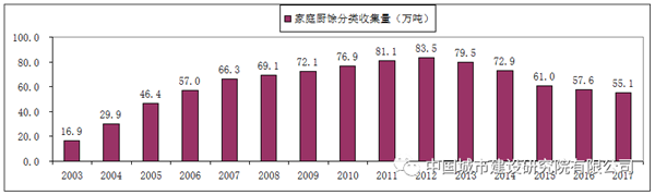 下圖是臺灣家庭廚余垃圾收集量的變化,2017年收集已經(jīng)退回到10前的水平。