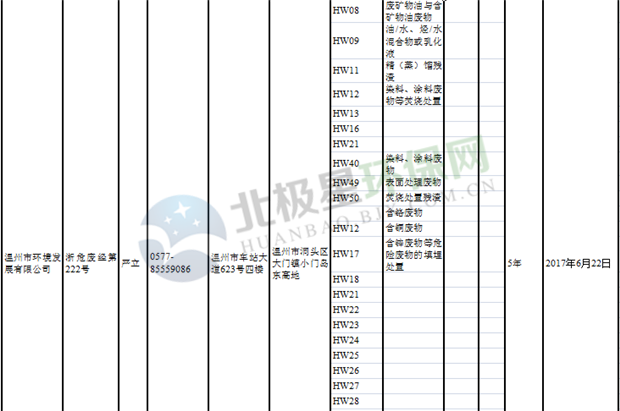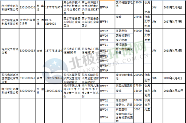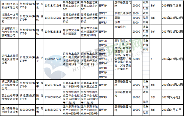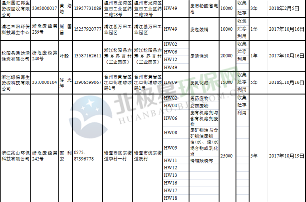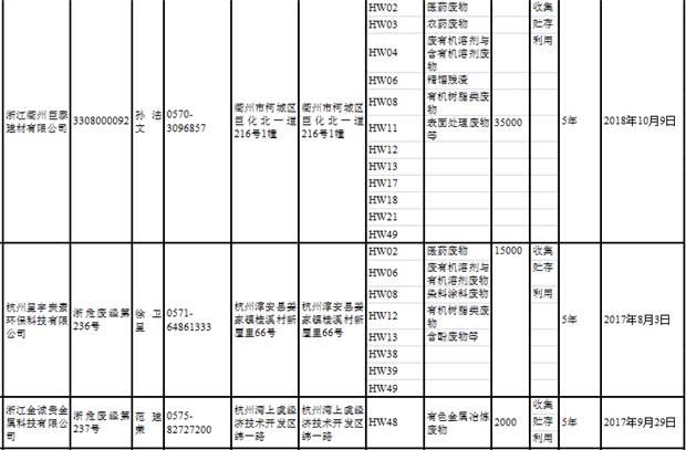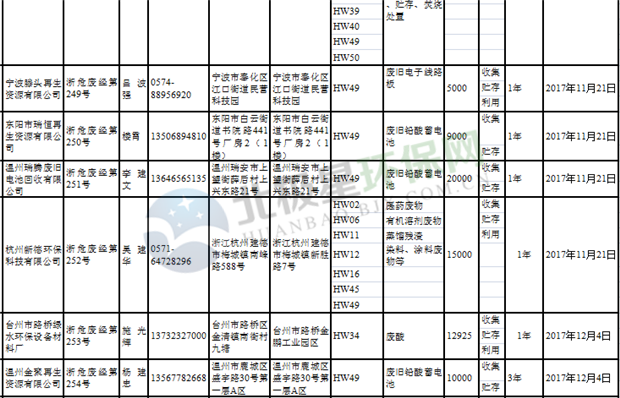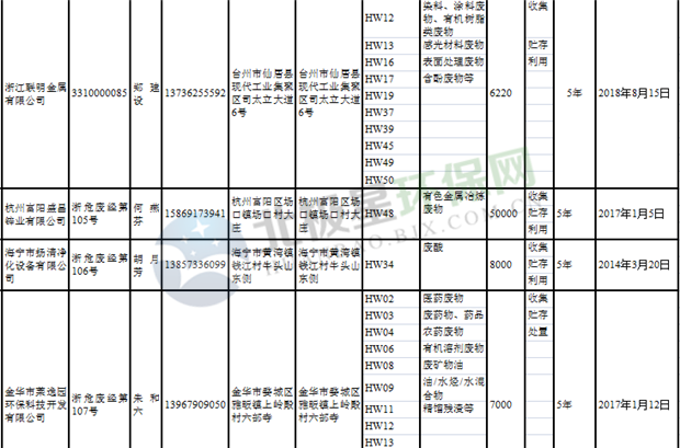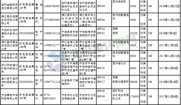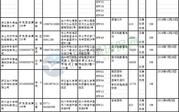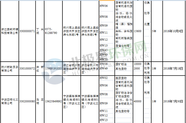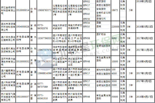 日前浙江省生態(tài)環(huán)境廳發(fā)布了《浙江省危險(xiǎn)廢物經(jīng)營(yíng)單位名單(2018年10月26日更新)》,涉及企業(yè)255家,并附有聯(lián)系電話。具體內(nèi)容如下:
