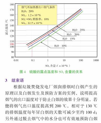 介紹了垃圾焚燒發(fā)電廠煙囪排白煙產生的原理,并以垃圾焚燒煙氣中白煙發(fā)生及預防方案的實例,說明提高排煙的出口溫度或通過脫去煙氣中的水分可以有效地預防白煙的產生。通過運營數據對比,說明采用加熱爐直接加熱或者采用熱交換器、脫水塔組合的方式可以實現防白煙的目的。但同時需要注意煙囪排煙溫度不能過低以避免硫酸酸露點腐蝕的情況發(fā)生。