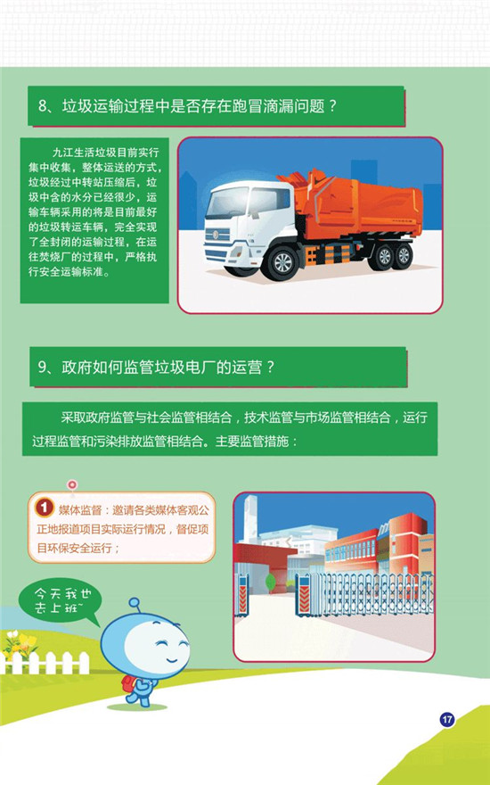 九江市將對(duì)該項(xiàng)目實(shí)行立體式監(jiān)管,采取政府監(jiān)管與社會(huì)監(jiān)管相結(jié)合,技術(shù)監(jiān)管與市場(chǎng)監(jiān)管相結(jié)合,運(yùn)行過(guò)程監(jiān)管和污染排放監(jiān)管相結(jié)合。媒體監(jiān)督方面,邀請(qǐng)各類媒體客觀公正地報(bào)道項(xiàng)目實(shí)際運(yùn)行情況,督促項(xiàng)目環(huán)保安全運(yùn)行。政府監(jiān)管方面,派專人駐廠監(jiān)管,實(shí)時(shí)查看廠內(nèi)運(yùn)行情況,行業(yè)管理部門(mén)定期不定期進(jìn)行現(xiàn)場(chǎng)巡查,廠內(nèi)所有運(yùn)行指標(biāo)與環(huán)保部門(mén)實(shí)行在線聯(lián)網(wǎng),所有數(shù)據(jù)實(shí)時(shí)監(jiān)控。企業(yè)將在廠門(mén)口安裝電子屏實(shí)時(shí)發(fā)布數(shù)據(jù),主動(dòng)聘請(qǐng)具有相關(guān)檢測(cè)資質(zhì)的第三方檢測(cè)機(jī)構(gòu),對(duì)工廠的運(yùn)營(yíng)進(jìn)行監(jiān)測(cè)監(jiān)管,實(shí)現(xiàn)專業(yè)監(jiān)管,獨(dú)立監(jiān)管。公眾也可以通過(guò)開(kāi)放日、預(yù)約等形式進(jìn)行參觀監(jiān)督。