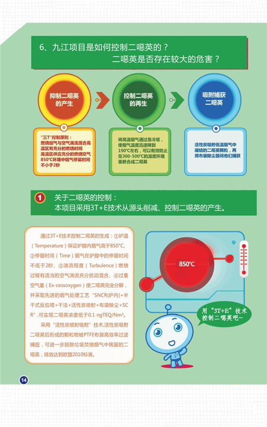 值得一提的是,九江垃圾焚燒發(fā)電項(xiàng)目采用3T+E技術(shù)從源頭削減、控制二噁英的產(chǎn)生。即保持垃圾焚燒溫度不低于850℃,煙氣在850C高溫區(qū)停留時(shí)間大于2秒,煙氣在爐膛內(nèi)充分?jǐn)_動(dòng)混合,使垃圾焚燒產(chǎn)生的二噁英得以分解消失;同時(shí),煙氣凈化系統(tǒng)中采用“活性炭噴射吸附”技術(shù);可有效吸附垃圾在爐膛內(nèi)焚燒時(shí)未完全分解的二噁英,排放標(biāo)準(zhǔn)完全達(dá)到或優(yōu)于0.1 ng TEQ/Nm³。通過(guò)上述環(huán)保措施處理后,二噁英的排放將達(dá)到歐盟2010標(biāo)準(zhǔn)(目前世界煙氣排放最高標(biāo)準(zhǔn))。