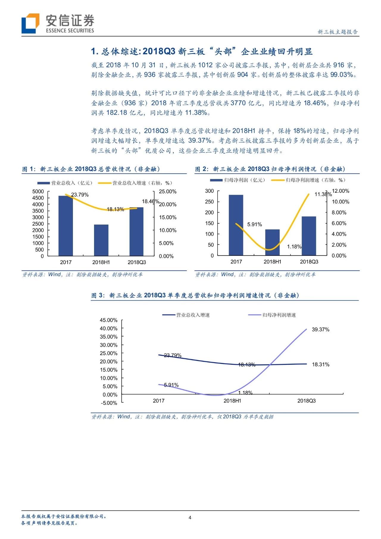 總體綜述: 2018Q3新三板“頭部”企業(yè)業(yè)績回升明顯