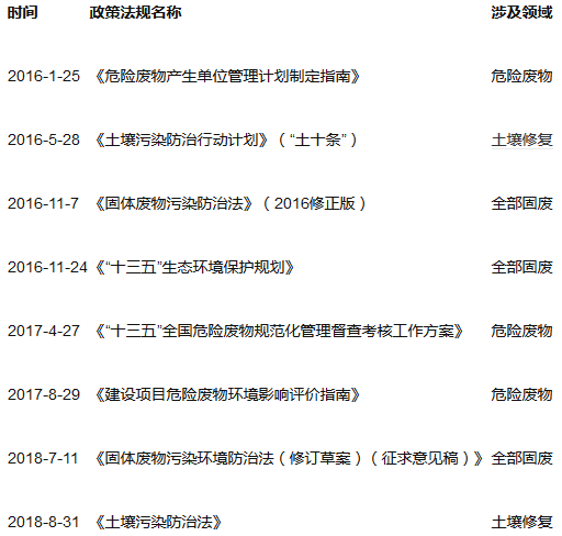 表2. 固廢處理利用領(lǐng)域近年重點(diǎn)政策法規(guī)