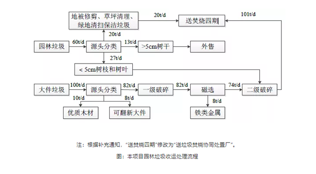 (2)綠化垃圾:針對綠化作業(yè)、臺風(fēng)天氣產(chǎn)生的樹枝、樹干、樹根進(jìn)行破碎,破碎后可以直接轉(zhuǎn)運(yùn)至垃圾焚燒發(fā)電廠焚燒發(fā)電,也可制成生物質(zhì)燃料。