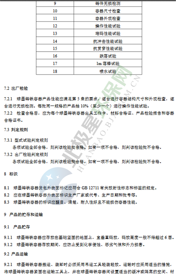 低、中水平放射性廢物高完整性容器——球墨鑄鐵容器(GB36900.1—2018)
