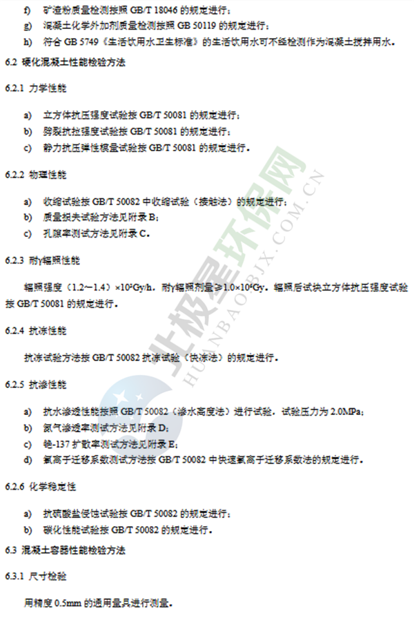 為貫徹《中華人民共和國環(huán)境保護法》《中華人民共和國放射性污染防治法》《中華人民共和國核安全法》,防治放射性污染,改善環(huán)境質(zhì)量,保護人體健康,制定本標準。低、中水平放射性廢物高完整性容器系列標準由三個不同材料制成的高完整性容器系列標準組成:—《低、中水平放射性廢物高完整性容器—球墨鑄鐵容器》(GB36900.1);—《低、中水平放射性廢物高完整性容器—混凝土容器》(GB36900.2);—《低、中水平放射性廢物高完整性容器—交聯(lián)高密度聚乙烯容器》(GB36900.3)。本標準為其中第二部分《低、中水平放射性廢物高完整性容器—混凝土容器》(GB36900.2),規(guī)定了用于包裝低、中水平放射性固體廢物所使用的混凝土高完整性容器(以下簡稱“混凝土容器”)的基本安全要求、產(chǎn)品性能要求、檢驗方法、檢驗規(guī)則、標識和產(chǎn)品的貯存和運輸要求。附錄A~G為規(guī)范性附錄。本標準為首次發(fā)布。