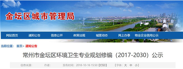 常州市金壇區(qū)環(huán)境衛(wèi)生專(zhuān)業(yè)規(guī)劃修編(2017-2030)公示